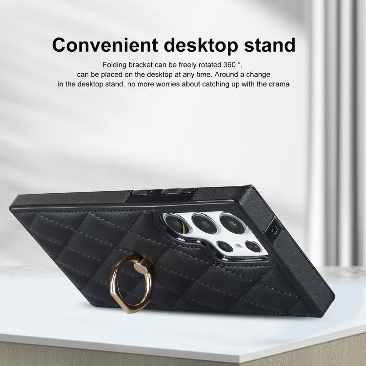 Rhombic Leather Case with Ring Holder Samsung S23 Ultra