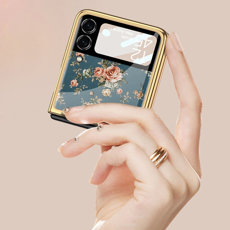GKK Floral Pattern Electroplating Painted Glass Case Samsung Z Flip3