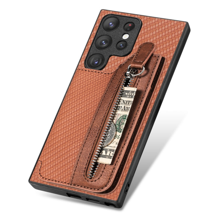 Carbon Fiber Flip Zipper Wallet Case Samsung S23 Ultra