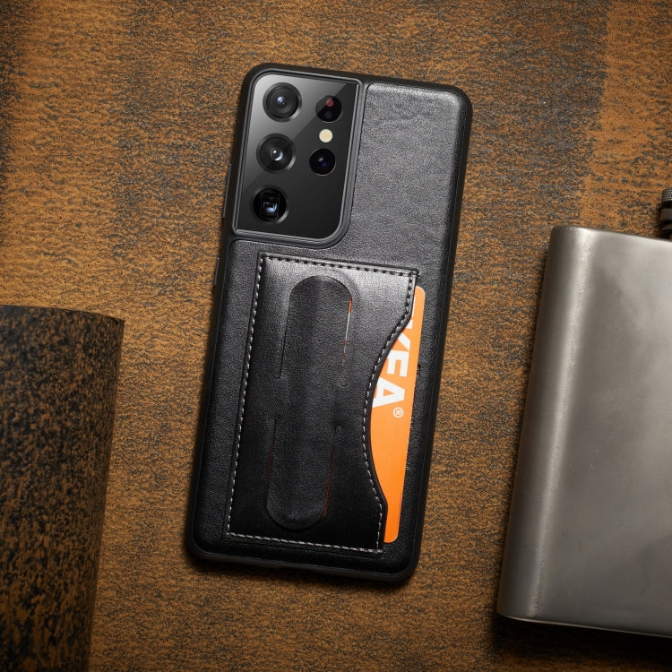 Fierre Shann Invisible Stand Leather Wallet Case Samsung S21 Ultra