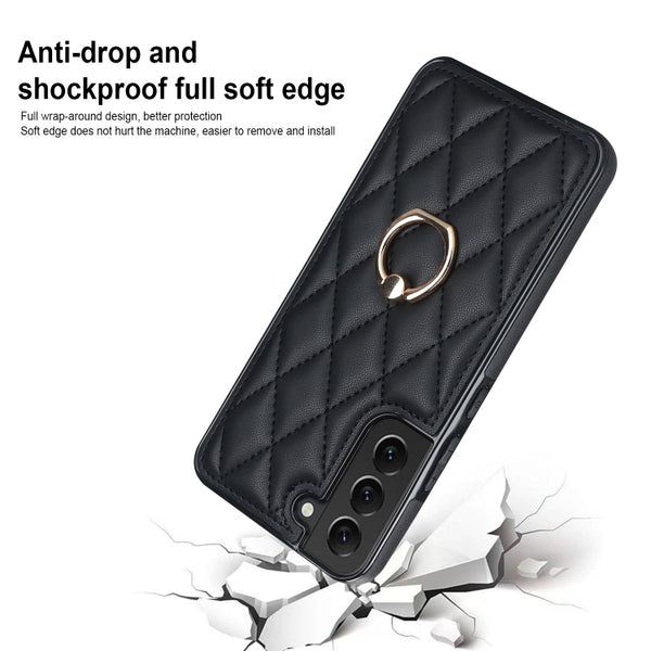 Rhombic Leather Case with Ring Holder Samsung S22