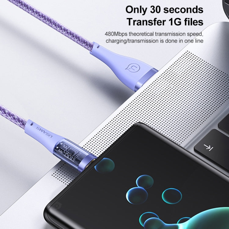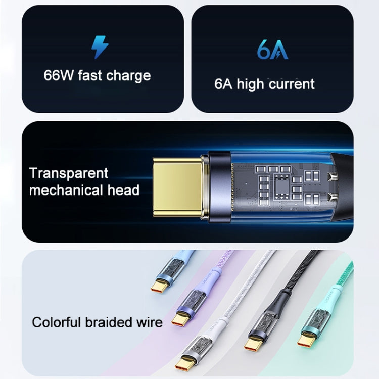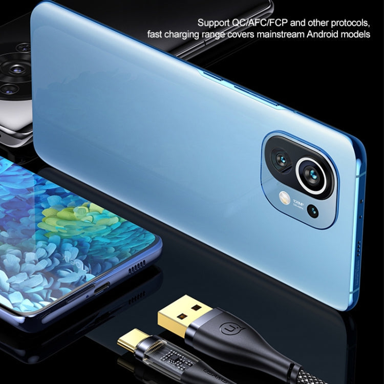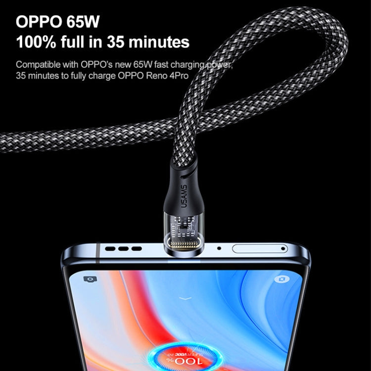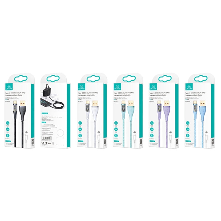 USAMS US-SJ572 Type-C / USB-C 66W Aluminum Alloy Transparent Charging Cata Cable, Length: 1.2m