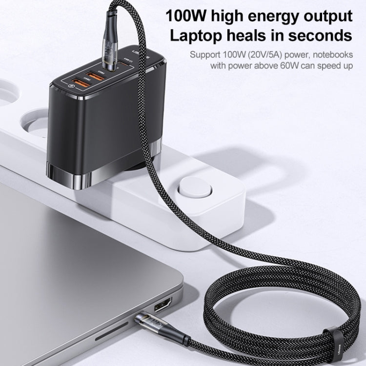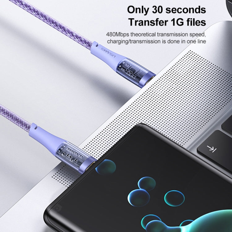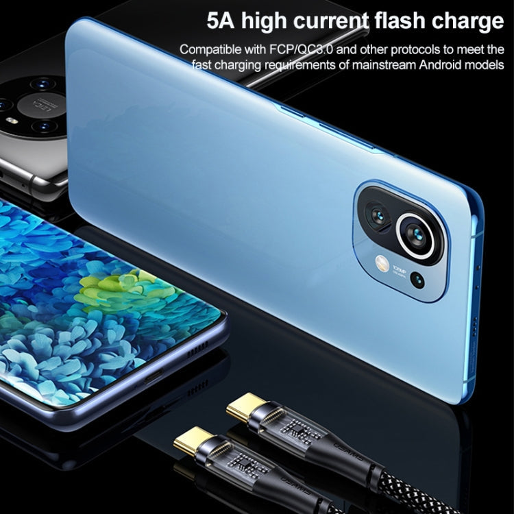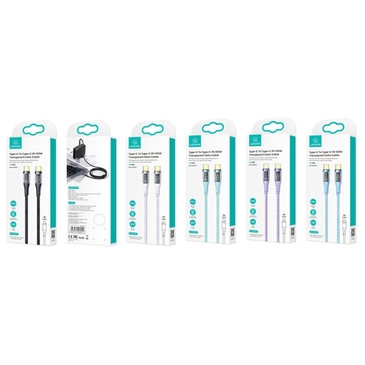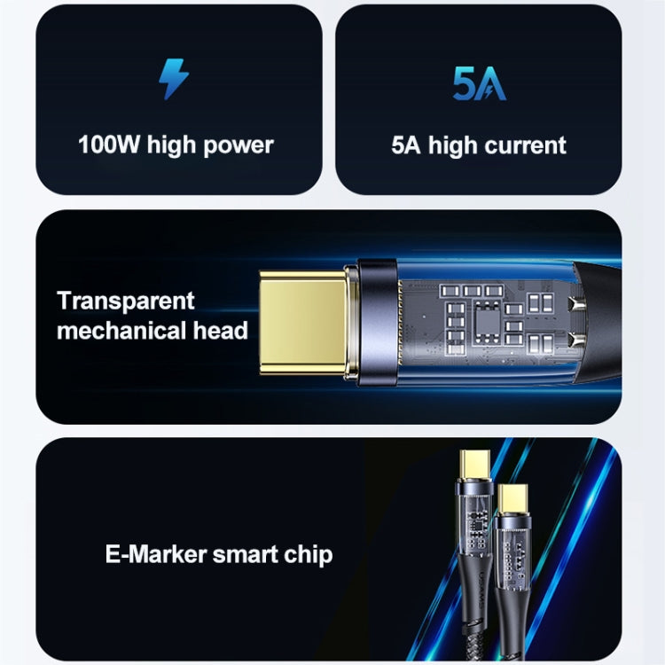 USAMS US-SJ574 Type-C / USB-C to Type-C / USB-C PD 100W Aluminum Alloy Transparent Charging Cata Cable, Length: 1.2m