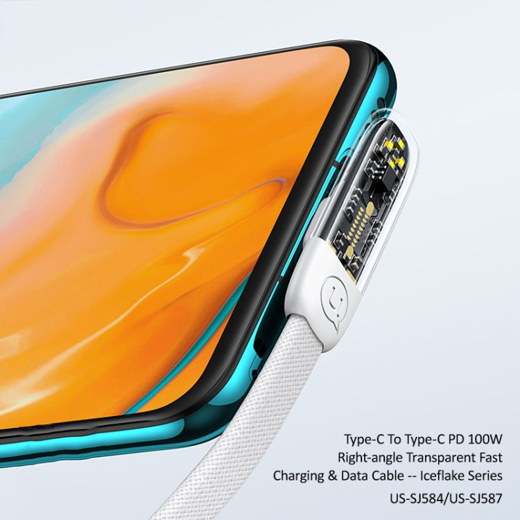 USAMS US-SJ584 PD 100W Iceflake Series Type-C to Type-C Right Angle Transparent Fast Charge Data Cable, Cable Length:1.2m