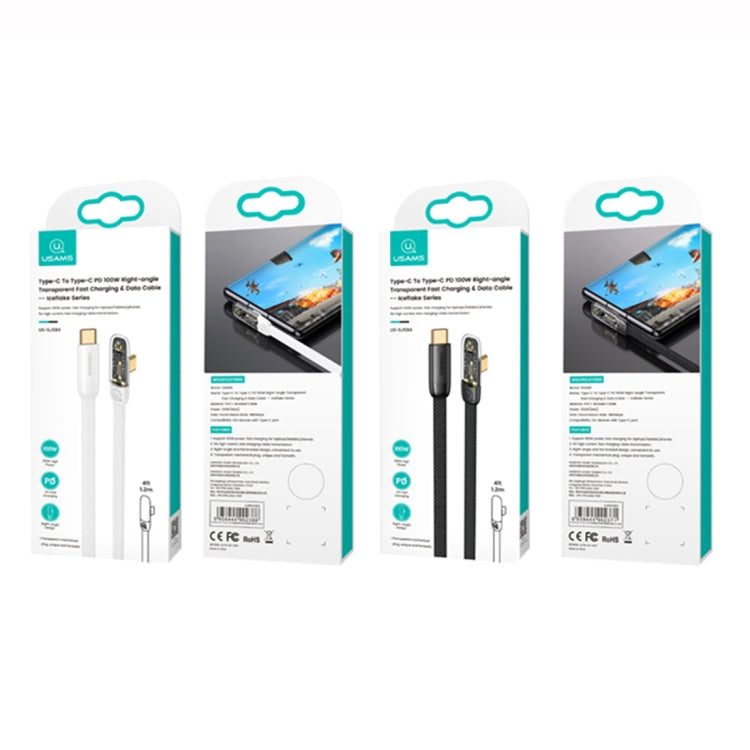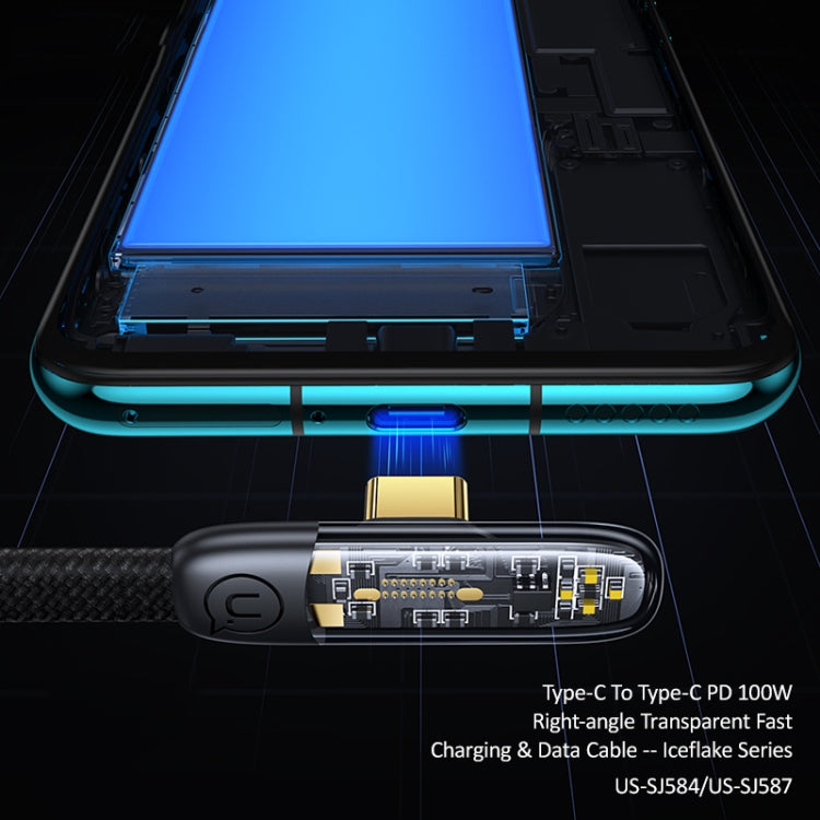 USAMS US-SJ584 PD 100W Iceflake Series Type-C to Type-C Right Angle Transparent Fast Charge Data Cable, Cable Length:2m