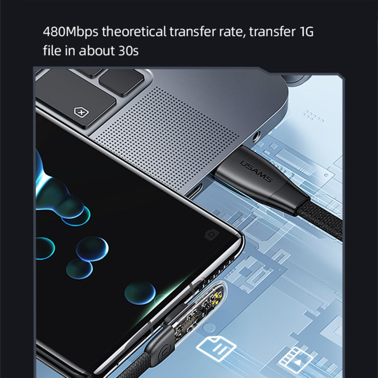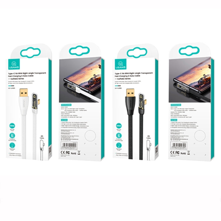 USAMS US-SJ585 66W Iceflake Series USB to Type-C Right Angle Transparent Fast Charge Data Cable, Cable Length:1.2m