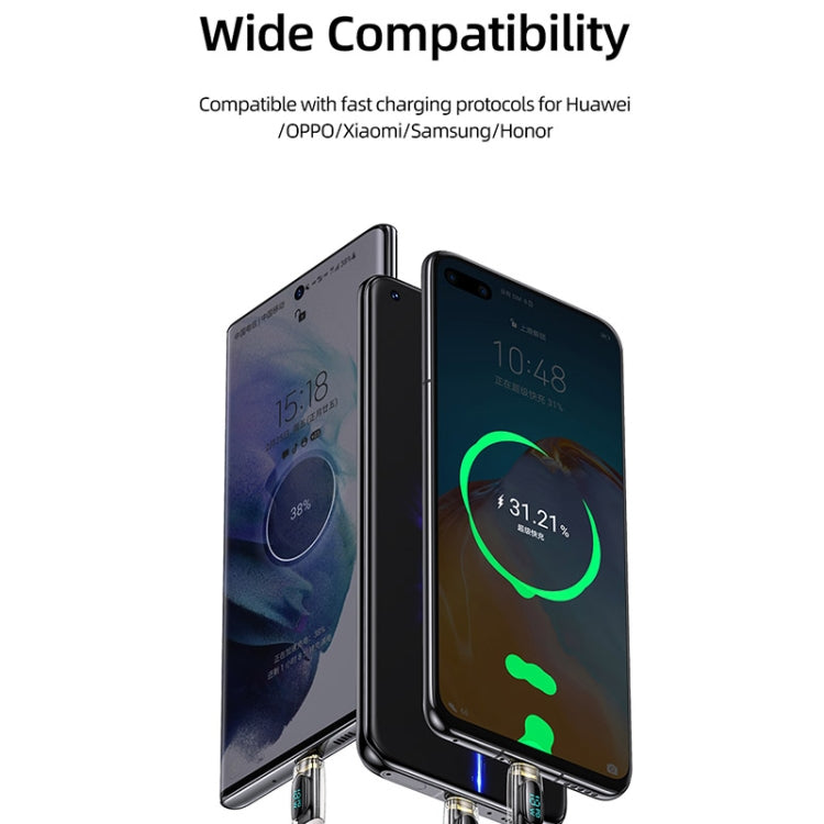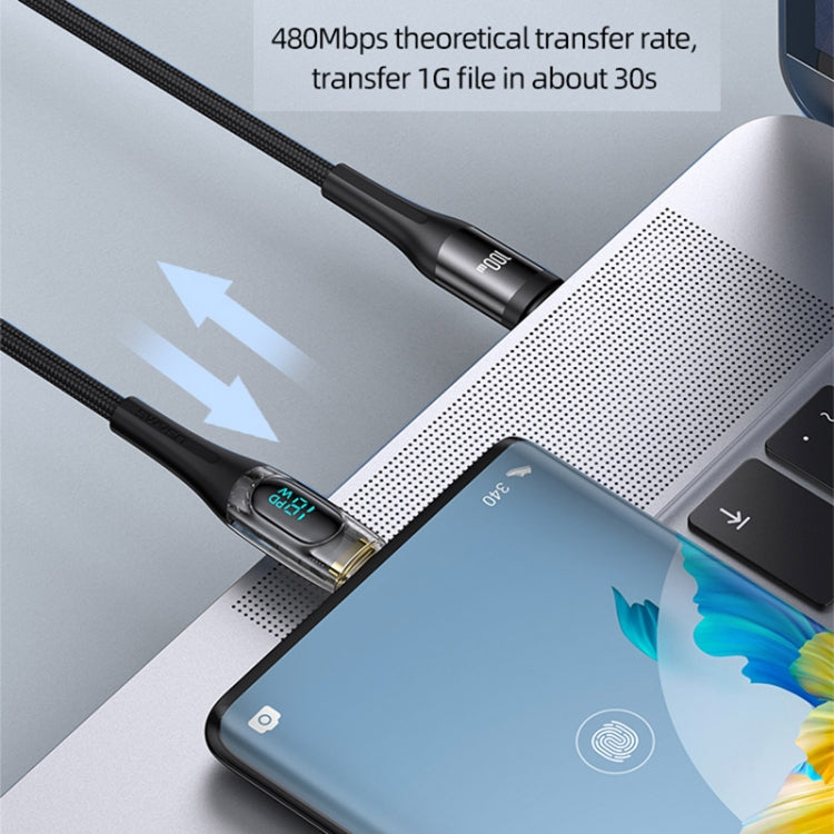 USAMS USB to Type-C 66W Aluminum Alloy Transparent Digital Display Fast Charge Data Cable, Cable Length:2m